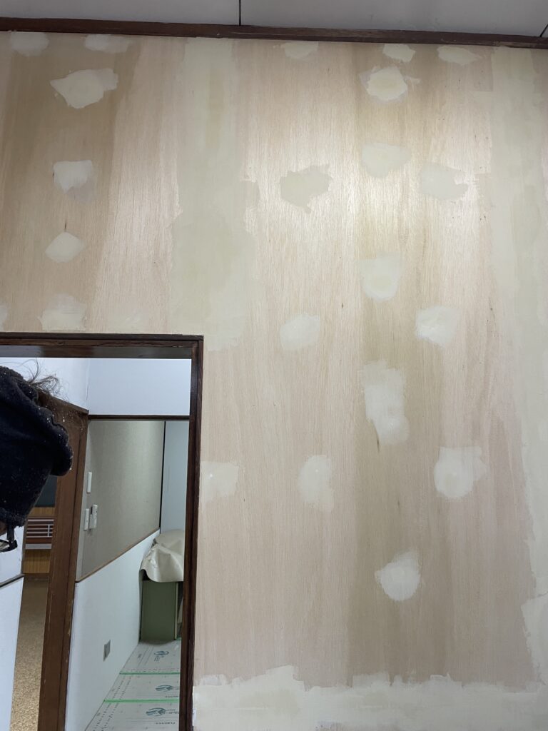 壁のクロス仕上げのパテ打ち